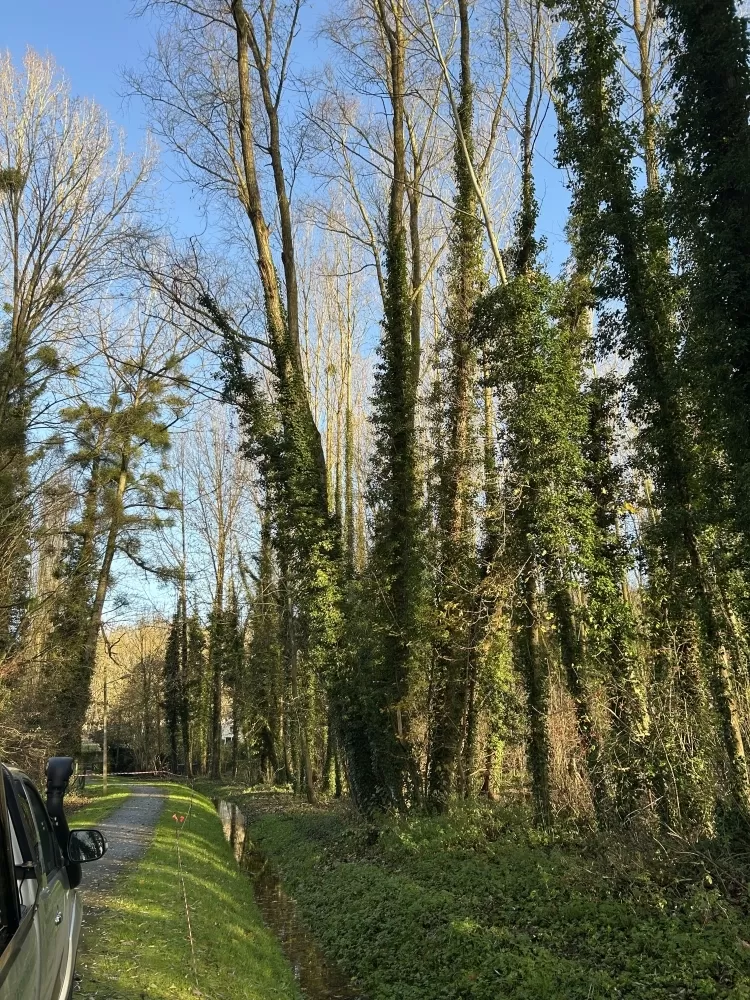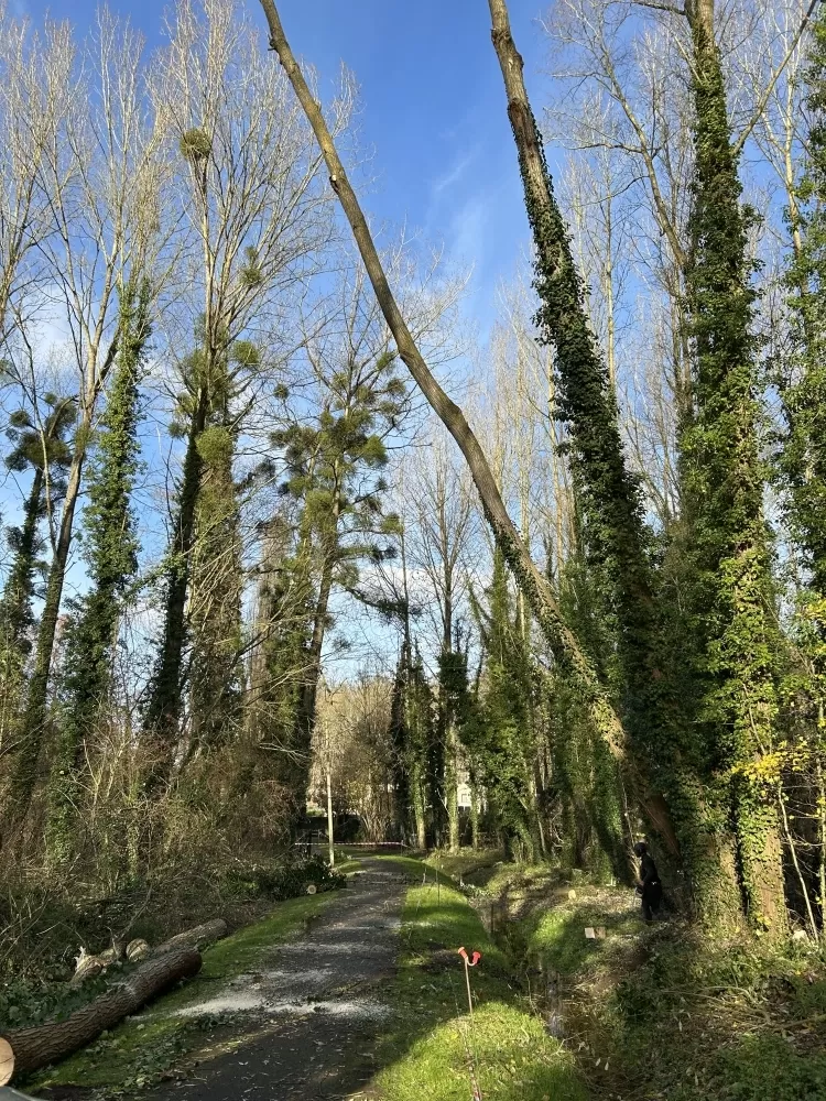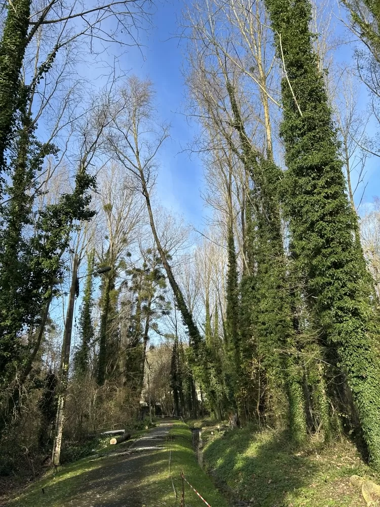 Dans un premier temps, nous intervenons le long du chemin piétonnier afin de supprimer les arbres morts ou dangereux.