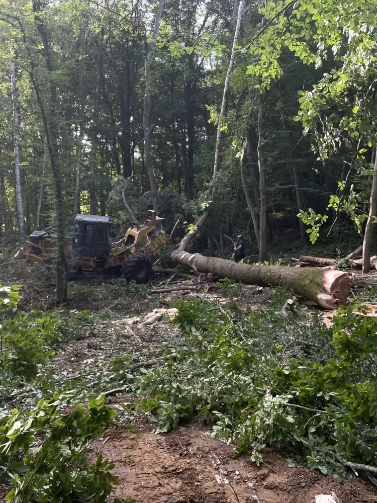 Nos compétences en bucheronnage nous ont amené à passer la fin du mois d'août et ce début septembre dans une parcelle forestière afin d'abattre une partie du patrimoine du propriétaire à des fins d'entretien. Pour cela, utilisation d'un matériel plus important et surtout plus imposant grâce à notre partenaire spécialiste.