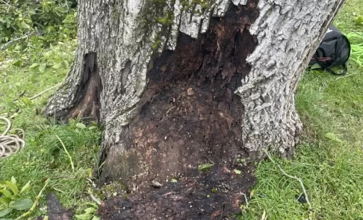 Nous avons été appelé pour diagnostiquer un Noyer dont le pied se dégradait.